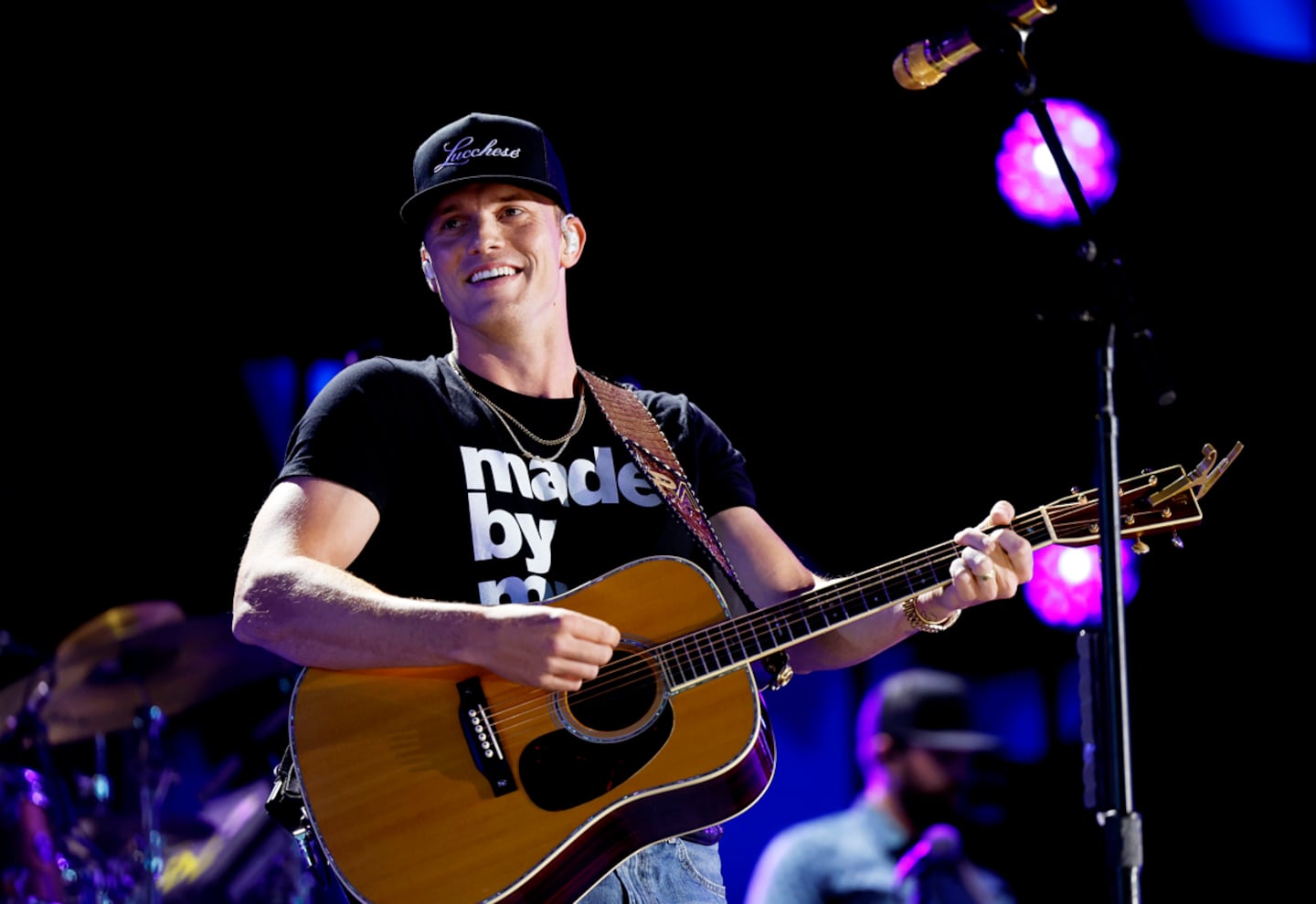 Parker McCollum wearing a cap, a t-shirt, and a gold chain