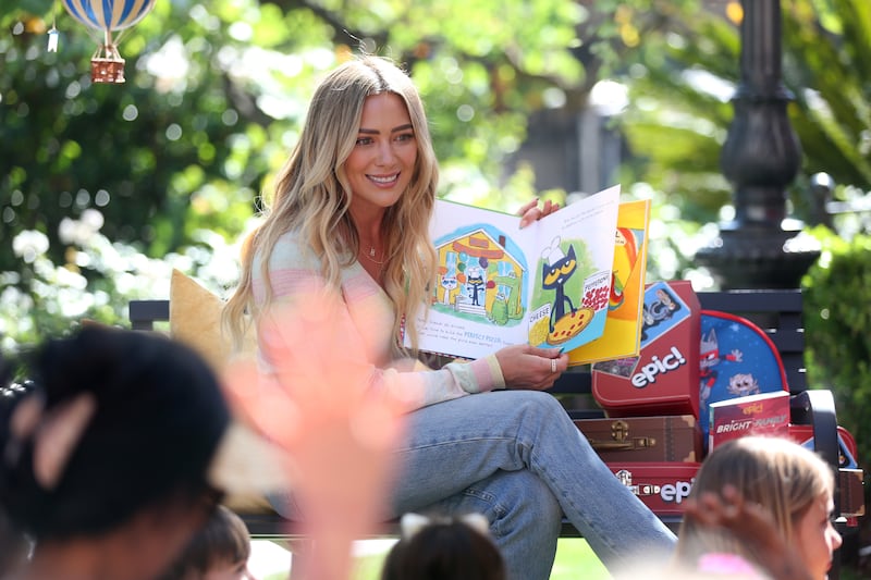 Epic!'s Go Anywhere Summer Kickoff Celebration Supporting St. Jude LOS ANGELES, CALIFORNIA - JUNE 30: Hilary Duff reads during Epic!'s Go Anywhere Summer Kickoff Celebration supporting St. Jude at The Grove on June 30, 2022 in Los Angeles, California. (Photo by Phillip Faraone/Getty Images for Epic) (Phillip Faraone/Getty Images for Epic)