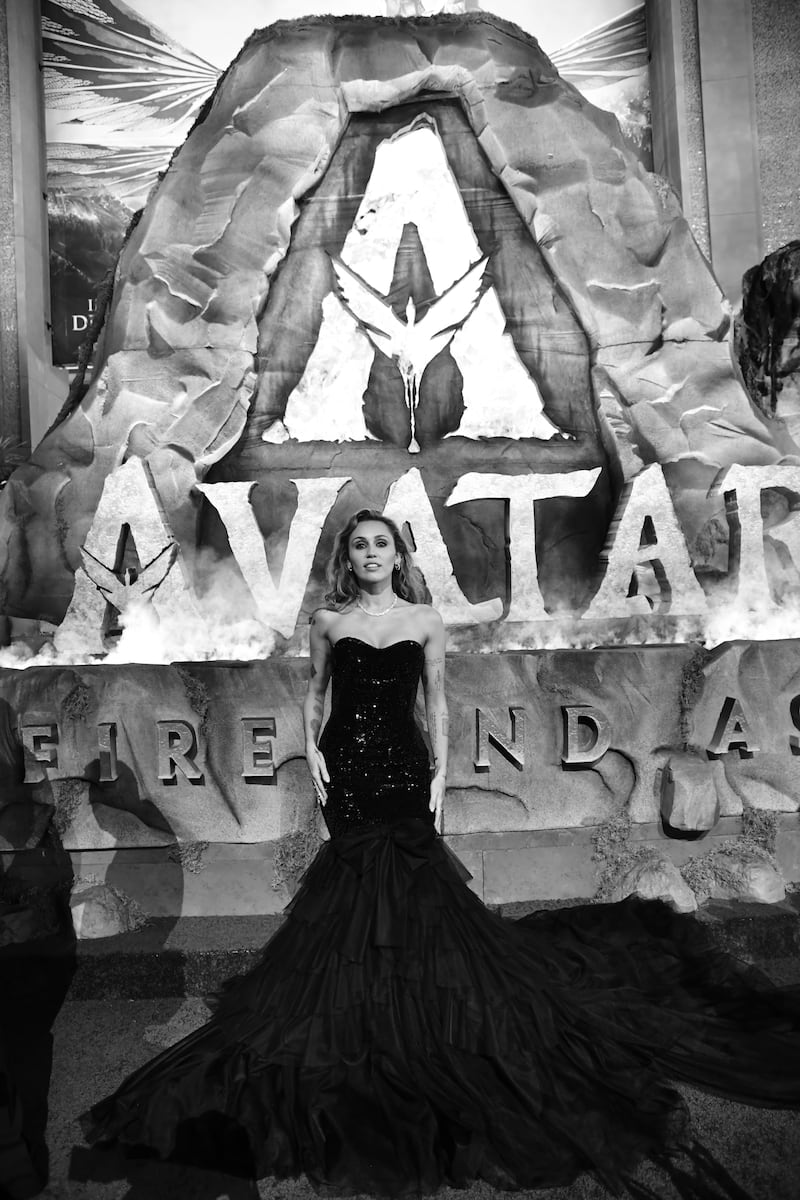 "Avatar: Fire And Ash" World Premiere HOLLYWOOD, CALIFORNIA - DECEMBER 01: (EDITORS NOTE: Image has been shot in black and white. Color version is not available.) Miley Cyrus attends the world premiere of 20th Century Studios "Avatar: Fire and Ash" at The Dolby Theatre in Hollywood, California on December 01, 2025. (Photo by Charley Gallay/Getty Images for 20th Century Studios) (Charley Gallay/Getty Images for 20th Century St)