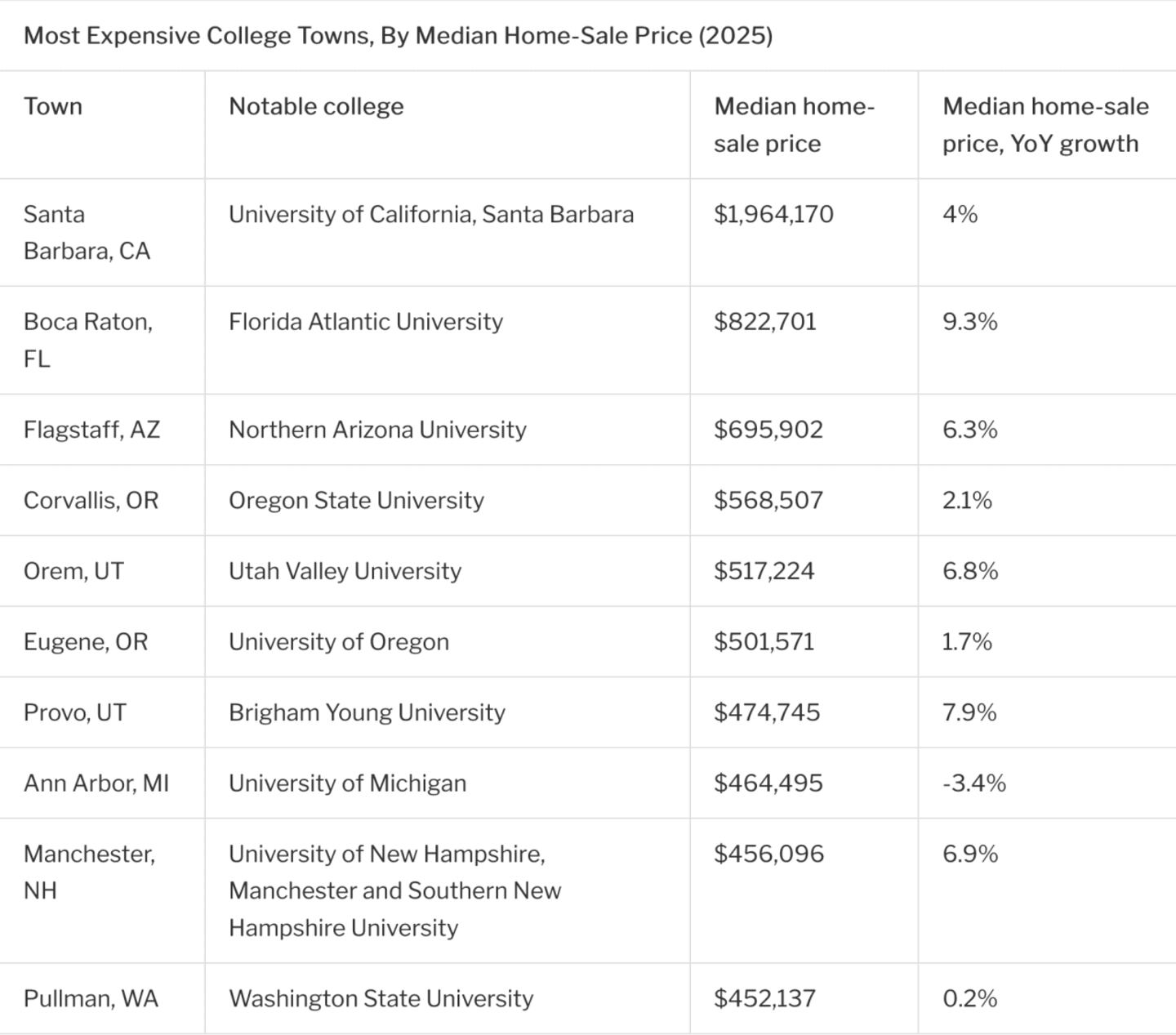 The remaining expensive college towns are spread across the country and generally in appealing or iconic locales, like the fertile Palouse region of Washington or the mountain country in northern Arizona.