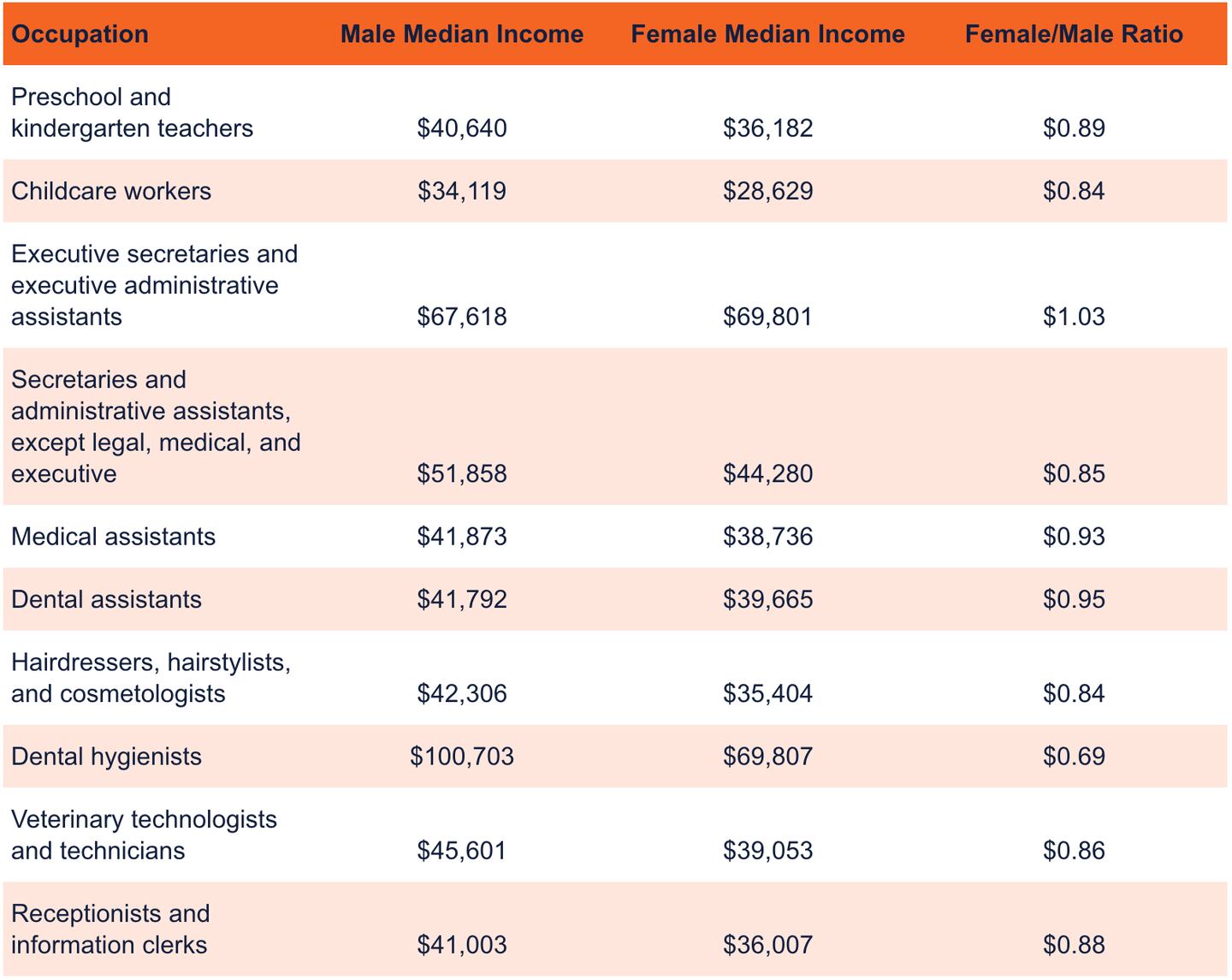 Female executive assistants make $1.03 for every dollar a male assistant makes.