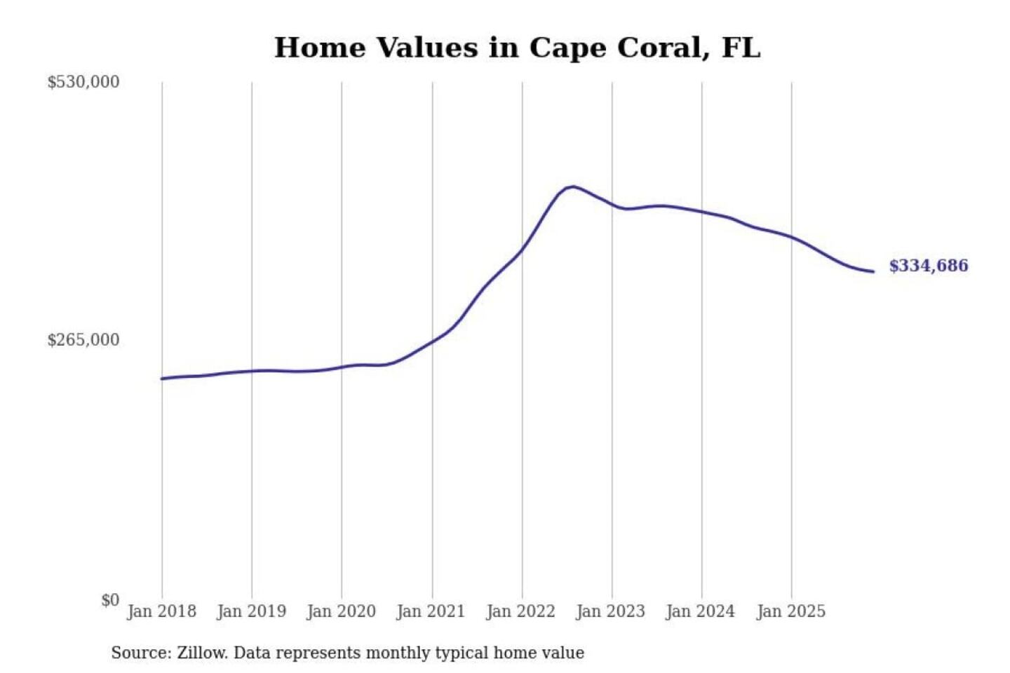 Stacker compiled a list of cities with the most expensive homes in the Cape Coral-Fort Myers, FL metro area using data from Zillow. Charts show the monthly typical home value since January 2018.