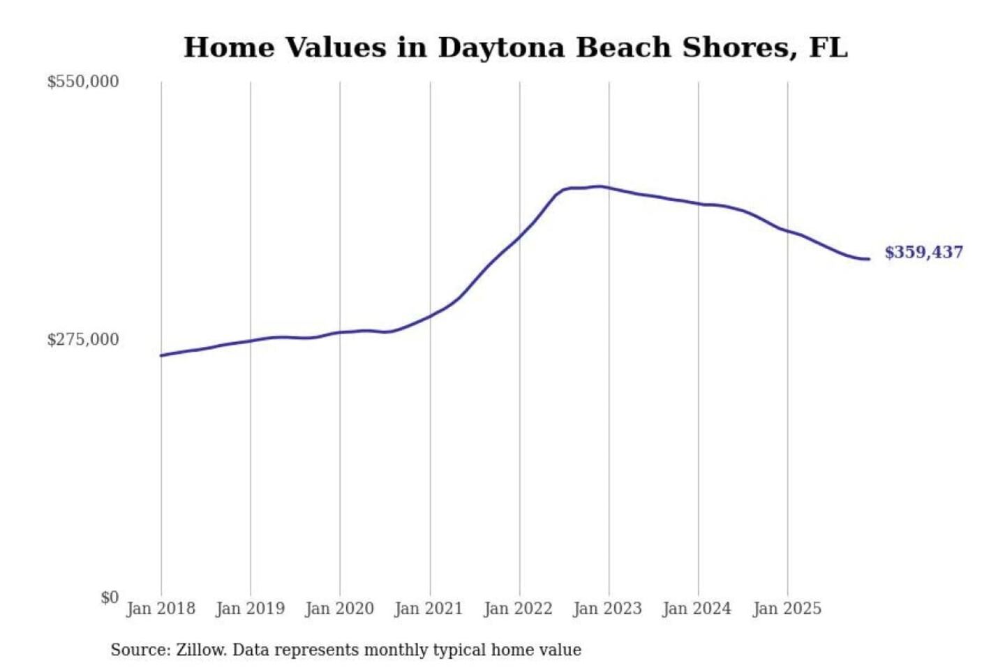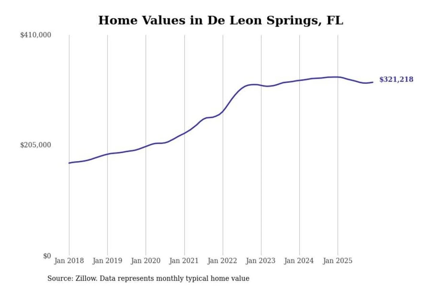 Stacker compiled a list of cities with the most expensive homes in the Deltona-Daytona Beach-Ormond Beach, FL metro area using data from Zillow. Charts show the monthly typical home value since January 2018.