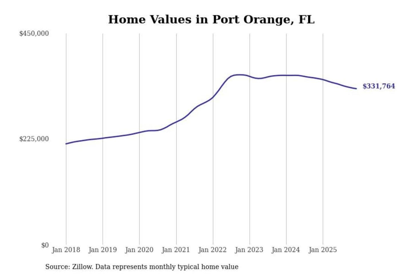 - 1-year price change: -$32,568 (-8.3%)