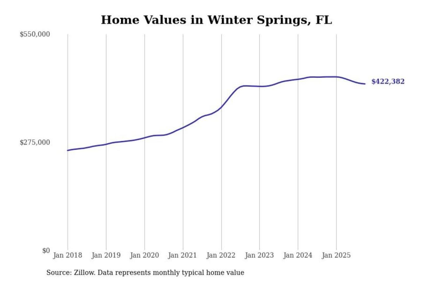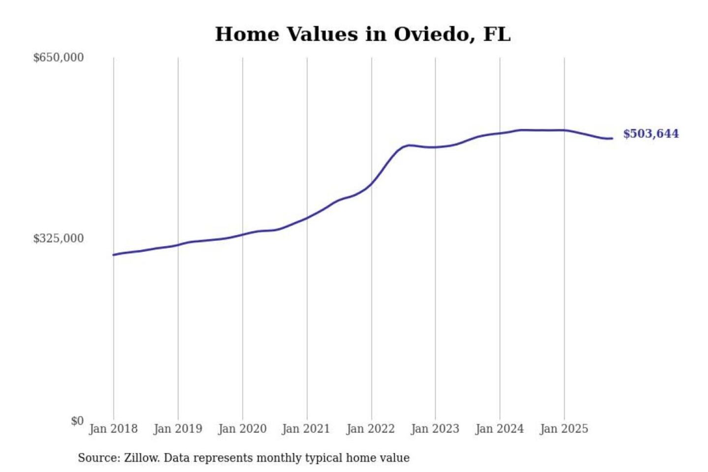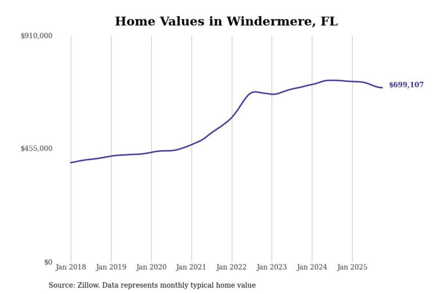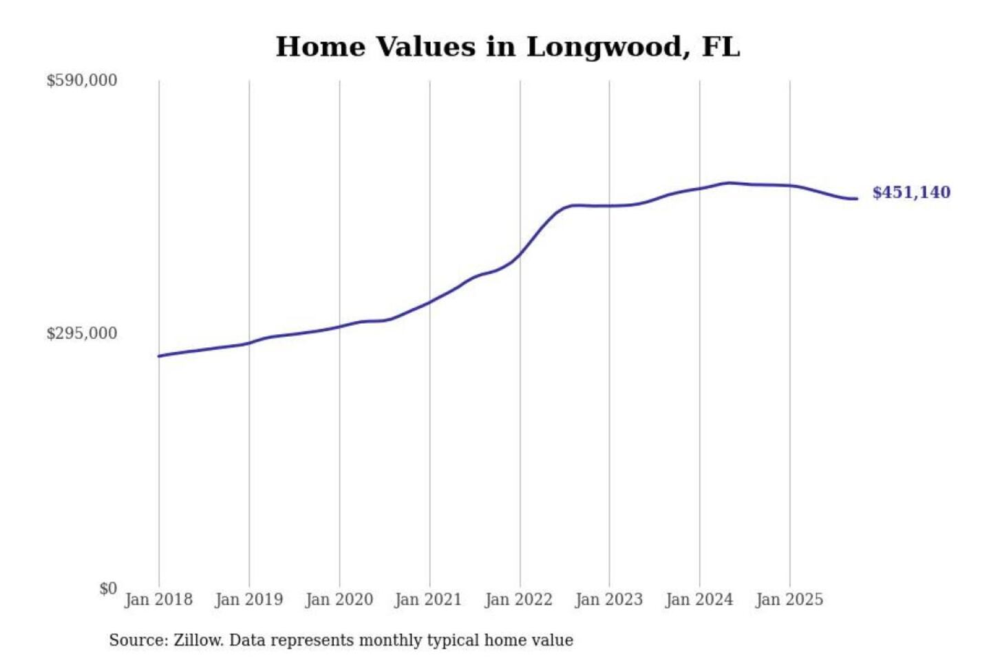 Stacker compiled a list of cities with the most expensive homes in the Orlando metro area using data from Zillow. Charts show the monthly typical home value since January 2018. Data was available for 55 cities and towns.