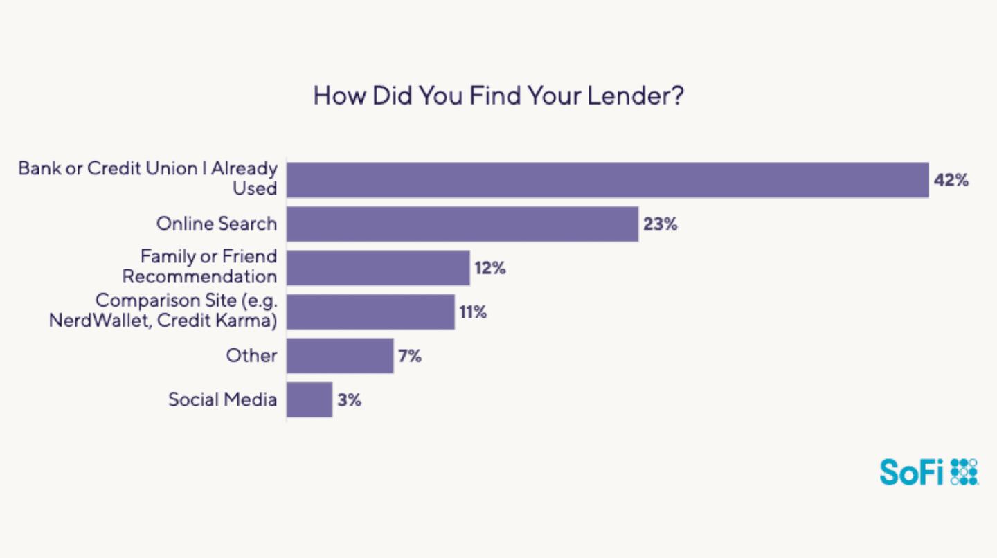 More than 4 in 10 respondents chose to borrow from a familiar source: the bank or credit union where they already have accounts. This arrangement typically allows for the greatest convenience when making monthly payments.