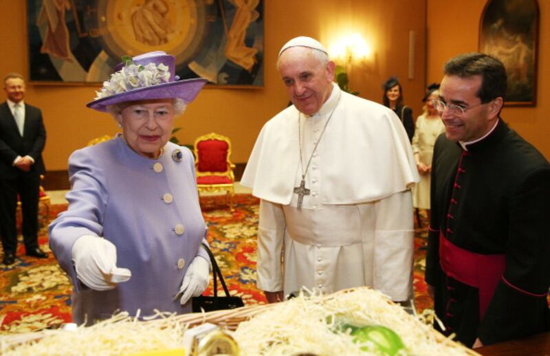 Pope Francis through the years VATICAN CITY, ITALY - APRIL 03: Queen Elizabeth II attends an audience with Pope Francis, during their one-day visit to Rome on April 3, 2014 in Vatican City, Vatican. During their brief visit The Queen and the Duke of Edinburgh will have lunch with Italian President Giorgio Napolitano and an audience with Pope Francis at the Vatican. The Queen was originally due to travel to Rome in April 2013 but the visit was postponed due to her ill health. The audience with Pope Francis will be the fifth meeting The Queen, who is head of the Church of the England, has held with a Pope in the Vatican. (Photo by Oli Scarff/Getty Images) (Oli Scarff/Getty Images)